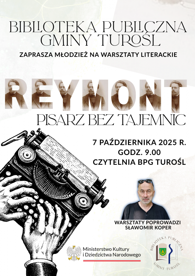 W dniu 07 października 2025 r. w czytelni BPG Turośl odbyły się wyjątkowe warsztaty literackie ze znanym pisarzem i historykiem, Sławomirem Koprem. Tematem spotkania był Władysław Reymont – pisarz bez tajemnic. Laureat Nagrody Nobla, autor „Chłopów”, a zarazem jedna z najbardziej intrygujących postaci polskiej literatury.